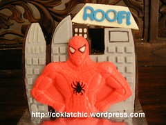 Untuk menemani tier kuenya, dibuatin kue ulang tahun dengan tema Spiderman juga.