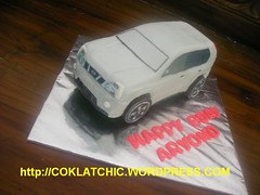 XTrail cake – Aryono Pesanan dari Hera, atas permintaan temannya untuk surprise cake suaminya. Cuman H-2 untungnya pas bisa, dan inilah hasilnya XTrail cake Rp 225000 Pelapis kue terbuat dari coklat bukan fondant atau sugar icing Share this: Share on Facebook (Opens in new window) Facebook Like Loading... Related