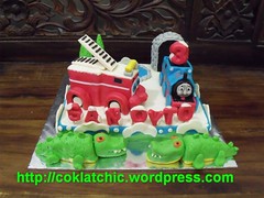 Trus aku minta tambahan design buaya d depan cakena. di alasna aja. Taro buayanya di depan kiri dan kanan. Jadi ada 2 buaya. Utk ukuran buayana aku serahin ke mba. Disesuaikan aja dgn ukuran cakena. Yg jelas buayana ada duri” tajam di badannya gitu d. Ini aku lampirin gambar buayana. Warna hijau & kuning.