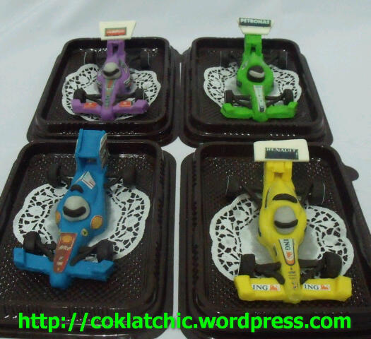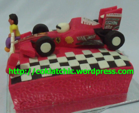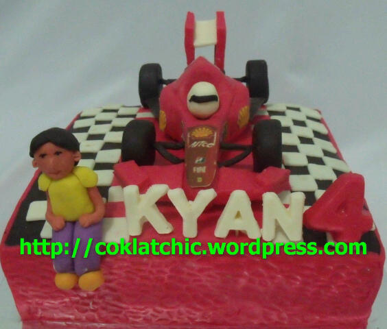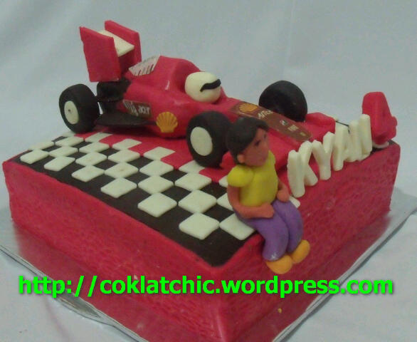 Mau memesan kue berbentuk mobil formula one berwarna merah dan minicake warna warni untuk ulang tahun Kyan ke 4.