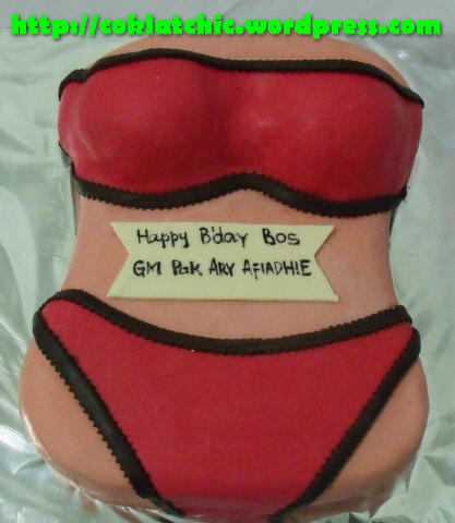 Boobs dan bikini cake dan minicake – Ary A Crafted cake terbuat dari coklat bukan fondant atau sugar icing Posted with WordPress for BlackBerry. Share this: Share on Facebook (Opens in new window) Facebook Like Loading... Related