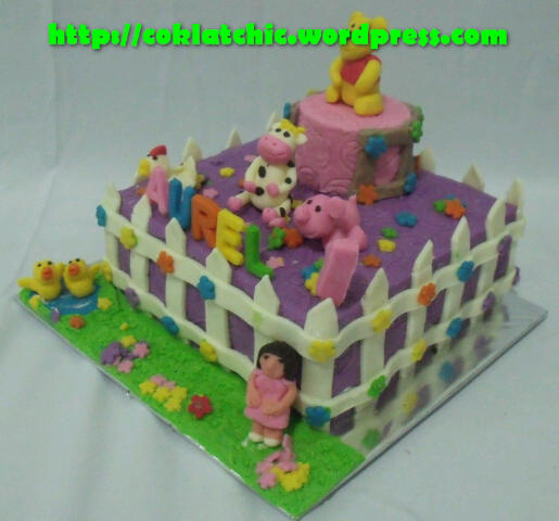 Farm Dora dan Winnie the Pooh cake Pelapis dan topper terbuat dari coklat bukan fondant dan sugar icing Posted with WordPress for BlackBerry. Share this: Click to share on Facebook (Opens in new window) Facebook Like Loading... Related