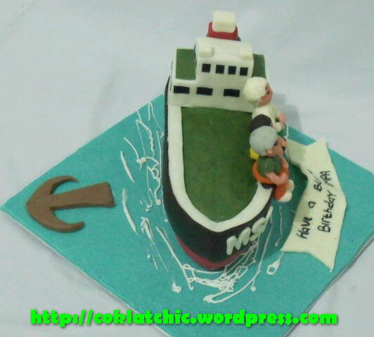 Kapal Tanker cake Terbuat dari crafted cake, cake dan topper dilapisi oleh coklat bukan fondant atau sugar icing Posted with WordPress for BlackBerry. Share this: Share on Facebook (Opens in new window) Facebook Like Loading... Related