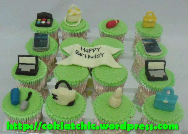 Laptop cupcake,kosmetik cupcake dan branded bag cupcake Topper terbuat dari coklat bukan fondant atau sugar icing Posted with WordPress for BlackBerry. Share this: Click to share on Facebook (Opens in new window) Facebook Like Loading... Related