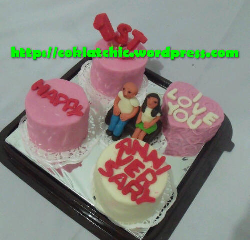 Minicake set anniversary dan minicake banteng Topper dan pelapis terbuat dari coklat bukan fondant atau sugar icing Posted with WordPress for BlackBerry. Share this: Share on Facebook (Opens in new window) Facebook Like Loading... Related