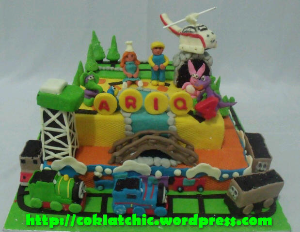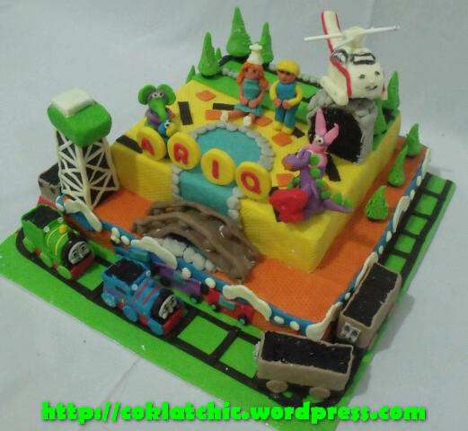 Cake Thomas dan teman-teman,Dibo dan teman-teman – ARIQ Topper terbuat dari crafted cake dilapisi oleh coklat bukan fondant atau sugar icing Posted with WordPress for BlackBerry. Share this: Click to share on Facebook (Opens in new window) Facebook Like Loading... Related