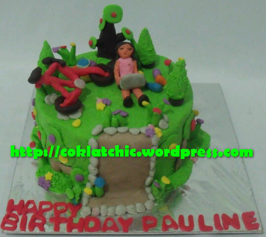Sepeda cake – PAULINE Topper dan pelapis terbuat dari coklat bukan fondant atau sugar icing Posted with WordPress for BlackBerry. Share this: Share on Facebook (Opens in new window) Facebook Like Loading... Related
