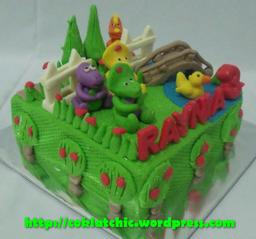 Barney and friends cake – RAYNIA Topper dan pelapis terbuat dari coklat bukan fondant atau sugar icing Posted with WordPress for BlackBerry. Share this: Share on Facebook (Opens in new window) Facebook Like Loading... Related