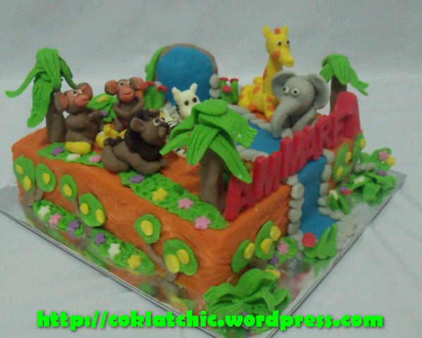 Jungle Cake – AMMARE Topper dan pelapis terbuat dari coklat bukan fondant atau sugar icing Posted with WordPress for BlackBerry. Share this: Share on Facebook (Opens in new window) Facebook Like Loading... Related