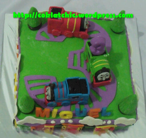 Thomas, James dan Percy the tank engine cake – MIGUEL Kereta terbuat dari crafted cake, bersama-sama cake dilapisi coklat bukan fondant atau sugar icing Posted with WordPress for BlackBerry. Share this: Share on Facebook (Opens in new window) Facebook Like Loading... Related