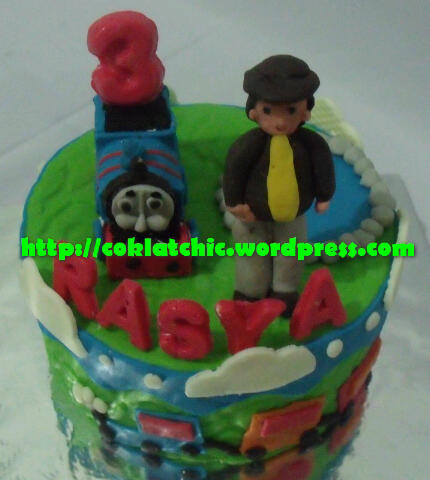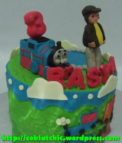 Kue Thomas the Tank Engine – RASYA Topper terbuat dari crafted cake,bersama-sama dgn kue alas dilapisi coklat bukan fondant atau sugar icing, ukuran bisa dimulai dari diameter 15 cm Posted with WordPress for BlackBerry. Share this: Share on Facebook (Opens in new window) Facebook Like Loading... Related