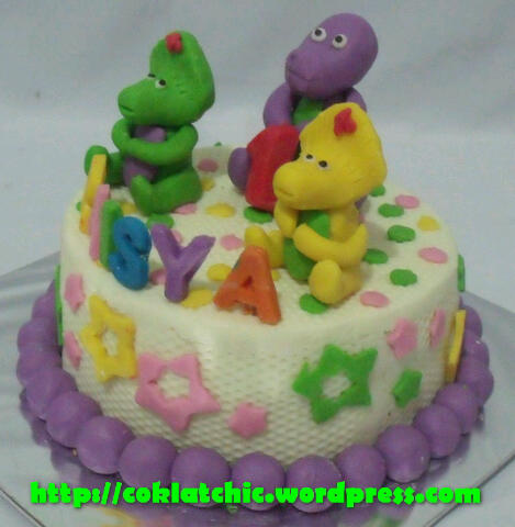Kue ulang tahun Barney dan teman-teman dan cupcake topper 3D Pelapis dan topper terbuat dr coklat bukan fondant atau sugar icing Posted with WordPress for BlackBerry. Share this: Share on Facebook (Opens in new window) Facebook Like Loading... Related