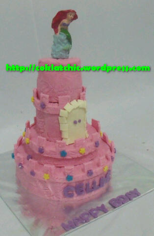 Castle Princess Cake – CELLINE Terbuat dari crafted cake dilapisi coklat bukan fondant atau sugar icing Posted with WordPress for BlackBerry. Share this: Share on Facebook (Opens in new window) Facebook Like Loading... Related