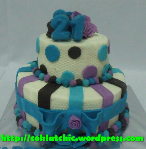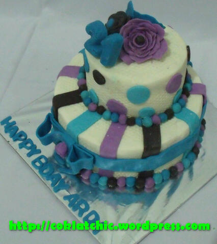 Kue 2 tingkat – ARDI Topper atau pelapis terbuat dari coklat bukan fondant atau sugar icing Posted with WordPress for BlackBerry. Share this: Share on Facebook (Opens in new window) Facebook Like Loading... Related