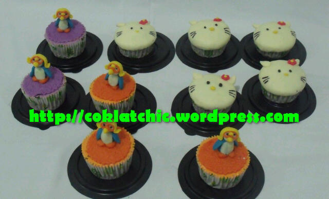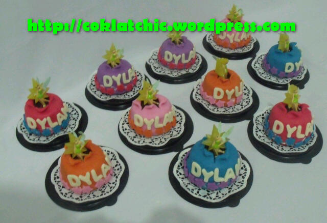 Minicake Tinkerbell, Cupcake pororo dan cupcake hello kitty – DYLAN Topper dan pelapis terbuat dari coklat bukan fondant atau sugar icing Posted with WordPress for BlackBerry. Share this: Share on Facebook (Opens in new window) Facebook Like Loading... Related