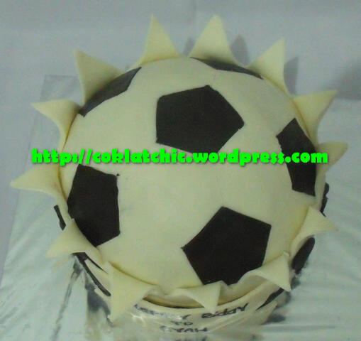 Soccer cake – AYAH Harga mulai dari Rp 250 ribu, pelapis kue terbuat dari coklat bukan fondant atau sugar icing Posted with WordPress for BlackBerry. Share this: Click to share on Facebook (Opens in new window) Facebook Like Loading... Related