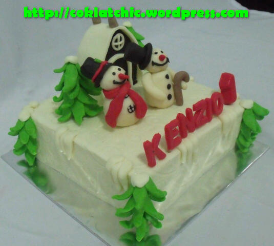 Snowman cake – KENZIO Harga mulai dari Rp 200 ribu dgn alas round atau Rp 300 ribu dgn alas kotak, rumah terbuat dari crafted cake dan semuanya dilapisi coklat bukan fondant atau sugar icing Posted with WordPress for BlackBerry. Share this: Click to share on Facebook (Opens in new window) Facebook Like Loading... Related