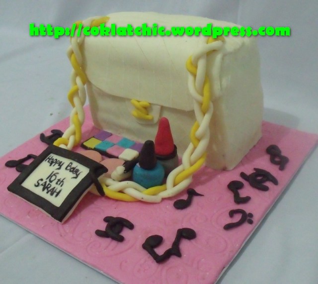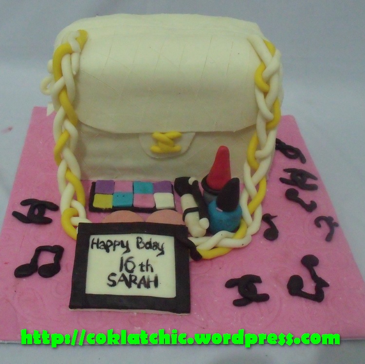 Chanel bag cake – SARAH Terbuat dari crafted cake,dilapisi coklat bukan fondant atau sugar icing,harga kue crafted cake ini mulai dari Rp 350 ribu Share this: Share on Facebook (Opens in new window) Facebook Like Loading... Related