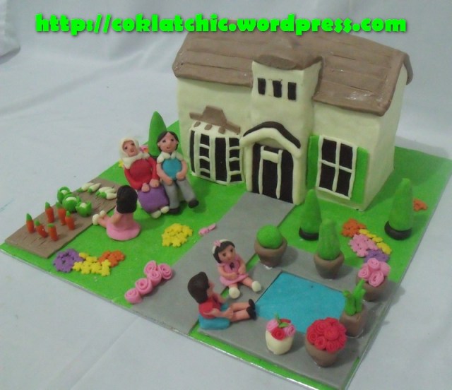 House cake – EYANG ANDUNG Terbuat dari crafted cake,dilapisi coklat bukan fondant atau sugar icing.Harga mulai dari Rp 350 ribu Share this: Share on Facebook (Opens in new window) Facebook Like Loading... Related