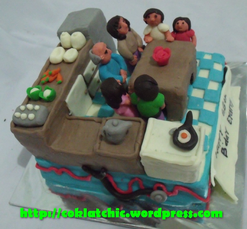 Cake bertema dapur Harga mulai dari Rp 300 ribu. Topper terbuat dari minicake dilapisi coklat bukan fondant atau sugar icing. Share this: Share on Facebook (Opens in new window) Facebook Like Loading... Related