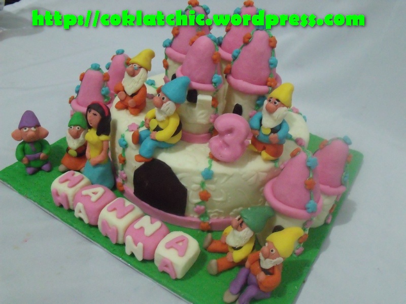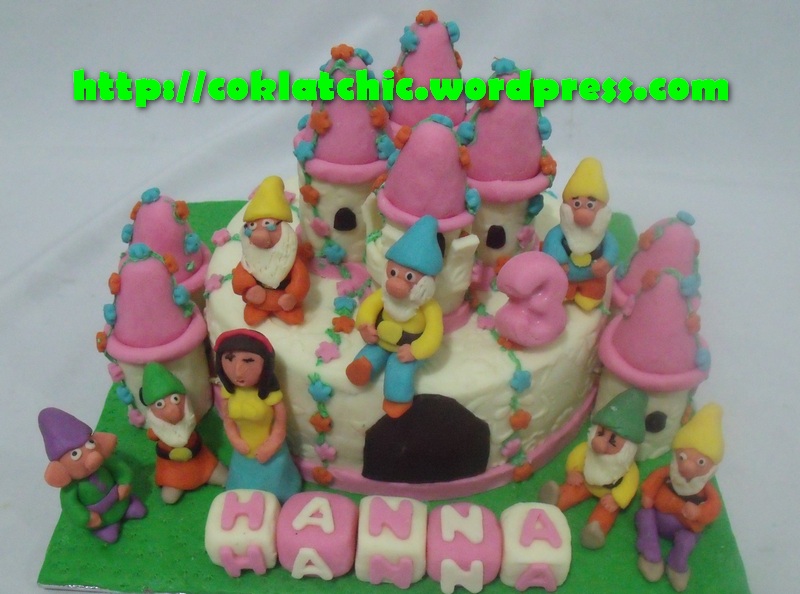 Istana Snowhite dan 7 kurcaci cake – HANNA Harga castle cake ini mulai dari Rp 275 ribu, semua terbuat dari kue, dengan dilapisi coklat bukan fondant atau sugar icing Share this: Share on Facebook (Opens in new window) Facebook Like Loading... Related