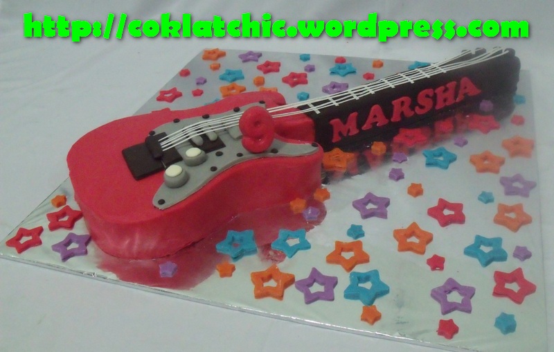 Gitar cake – MARSHA Harga mulai dari Rp 350 ribu,pelapis terbuat dari coklat bukan fondant atau sugar icing Share this: Click to share on Facebook (Opens in new window) Facebook Like Loading... Related
