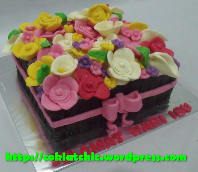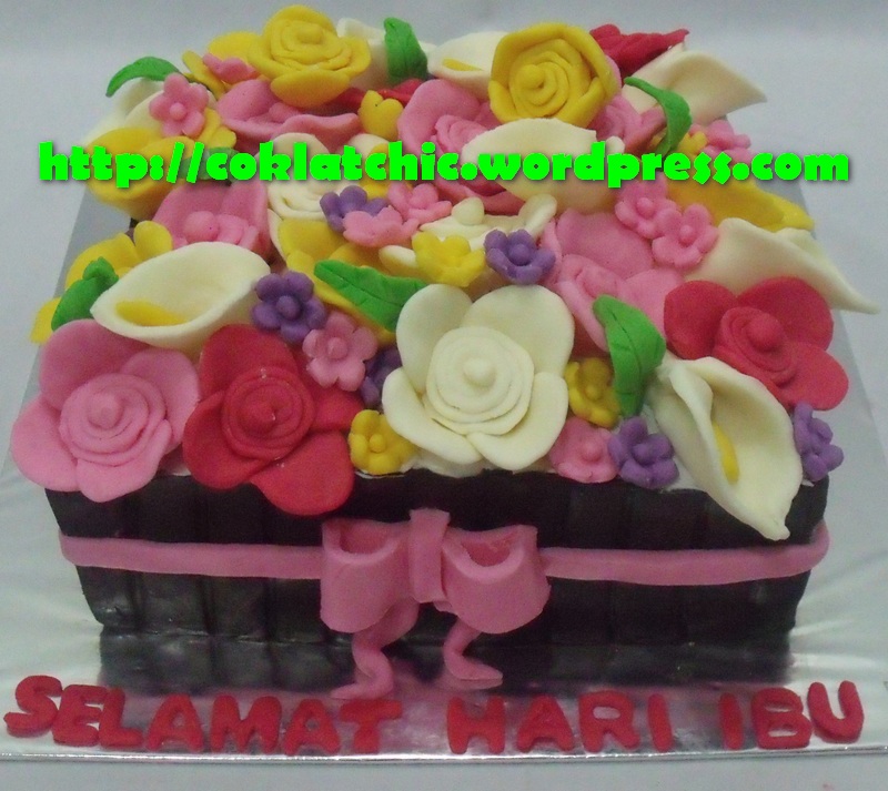 Flower cake untuk hari ibu – ERNA Harga kue mulai dari Rp 300 ribu dgn topper dan pelapis dari coklat bukan fondant atau sugar icing Share this: Share on Facebook (Opens in new window) Facebook Like Loading... Related
