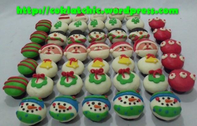Christmas minicupcake Topper dan pelapis terbuat dari coklat bukan fondant dan sugar icing Share this: Click to share on Facebook (Opens in new window) Facebook Like Loading... Related