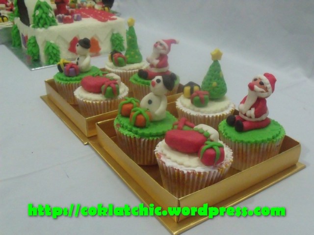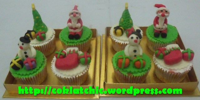 Cupcake set Christmas Topper dan pelapis terbuat dari coklat bukan fondant atau sugar icing Share this: Click to share on Facebook (Opens in new window) Facebook Like Loading... Related