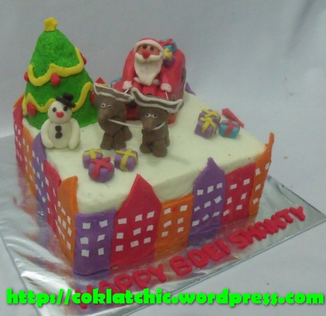 Kue Natal Harga mulai dari Rp 300 ribu,pelapis dan topper terbuat dari coklat bukan fondant atau sugar icing Share this: Click to share on Facebook (Opens in new window) Facebook Like Loading... Related