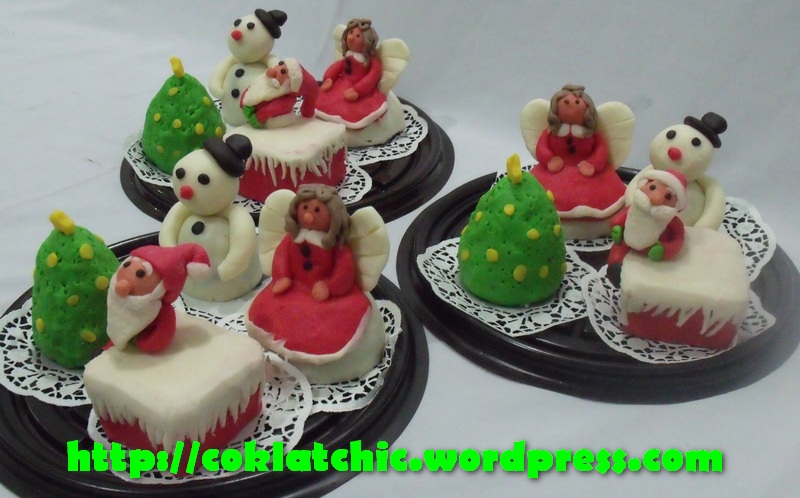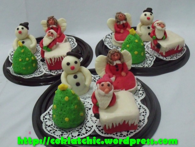 Minicake Snowman,minicake christmas tree~ pohon natal,minicake santa claus,dan minicake angel Topper dan pelapis terbuat dari coklat bukan fondant atau sugar icing Share this: Click to share on Facebook (Opens in new window) Facebook Like Loading... Related