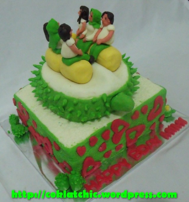 Durian cake – MAMI Harga mulai dari Rp 300 ribu,topper terbuat dari crafted cake,dilapisi coklat bukan fondant atau sugar icing Share this: Click to share on Facebook (Opens in new window) Facebook Like Loading... Related