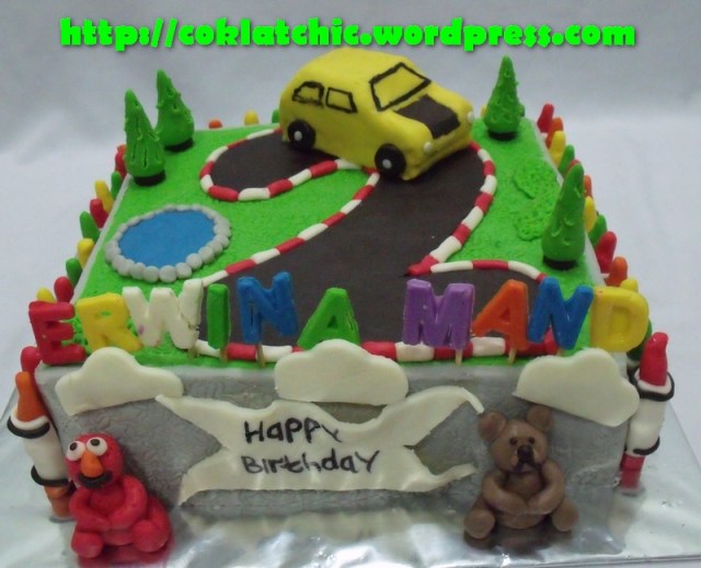 Mr Bean cars, elmo dan bear cake – ERWIN dan AMANDA Harga mulai dari Rp 300 ribu,mobil terbuat dari crafted cake,pelapis dan topper terbuat dari coklat bukan fondant atau sugar icing Share this: Click to share on Facebook (Opens in new window) Facebook Like Loading... Related