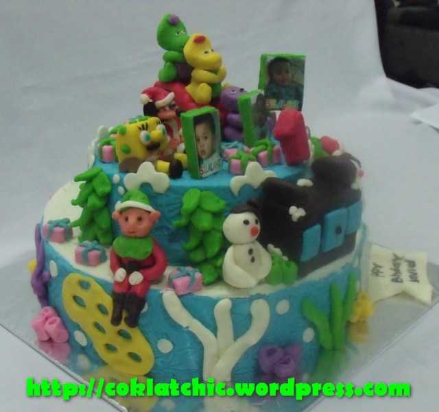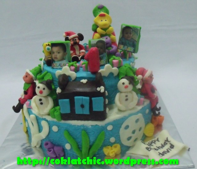 Barney,mickey mouse,spongebob dan snowman cake – DAVID Harga mulai dari Rp 500 ribu,topper dan pelapis terbuat dari coklat bukan fondant atau sugar icing Posted with WordPress for BlackBerry. Share this: Click to share on Facebook (Opens in new window) Facebook Like Loading... Related