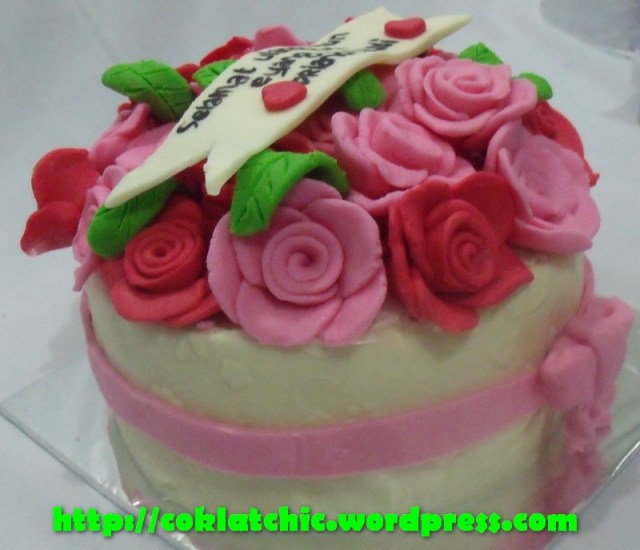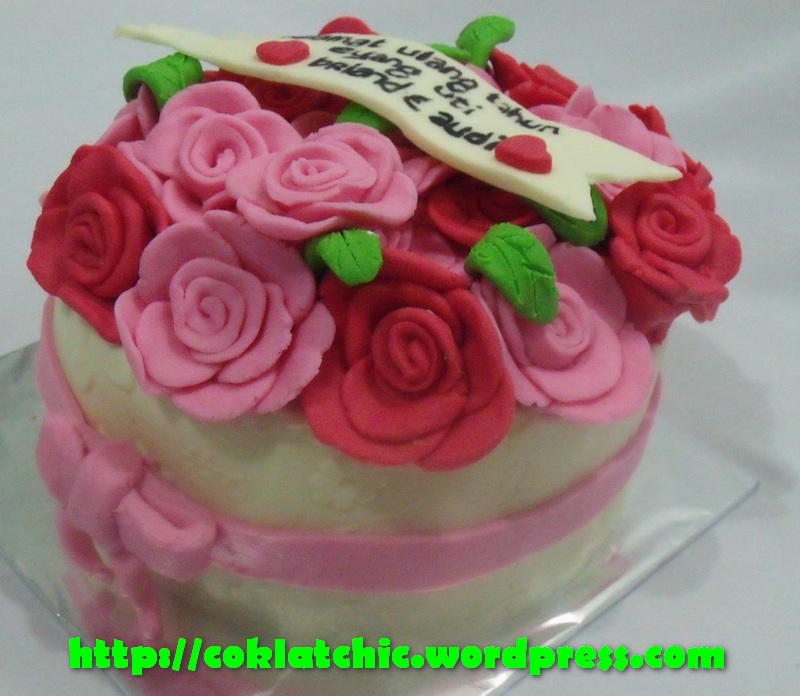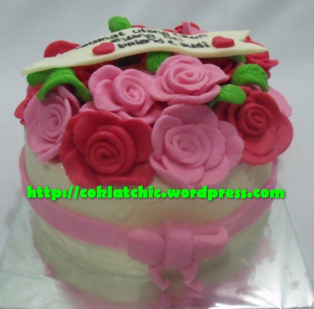 Cake bunga mawar Harga mulai dari Rp 125 ribu,topper dan pelapis terbuat dari coklat bukan fondant atau sugar icing Posted with WordPress for BlackBerry. Share this: Share on Facebook (Opens in new window) Facebook Like Loading... Related