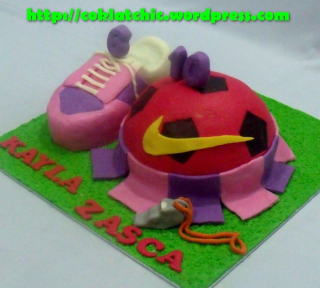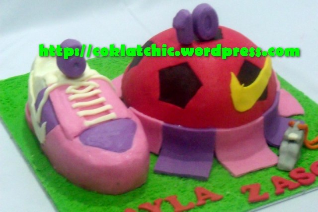 Cake sepatu olahraga pink dan ungu dan bola sepak merah – ZASCA dan KAYLA Harga kue model sepatu dan bola ini mulai dari Rp 250 ribu,terbuat dari crafted cake dilapisi coklat bukan fondant atau sugar icing Posted with WordPress for BlackBerry. Share this: Click to share on Facebook (Opens in new window) Facebook Like Loading... Related