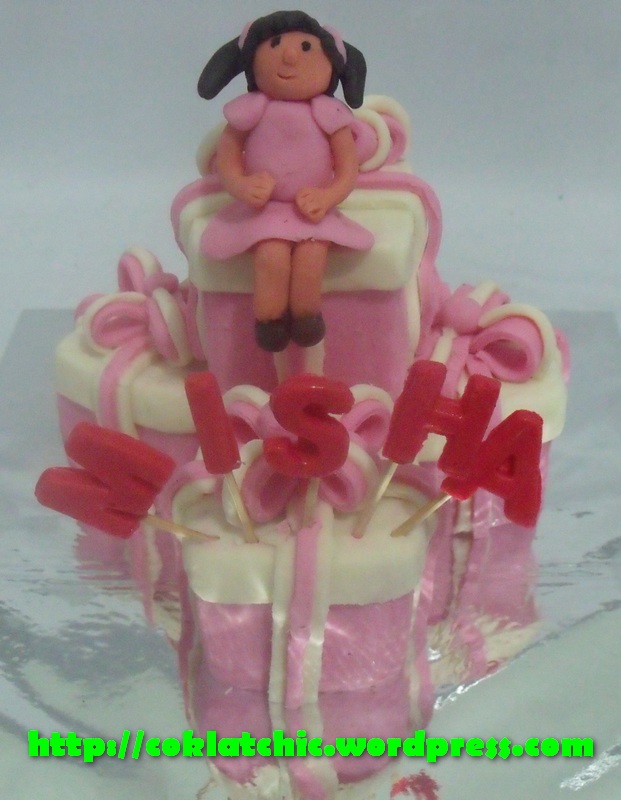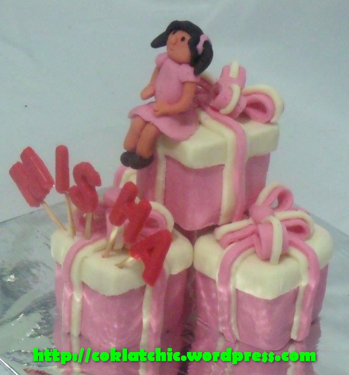 Miniature cake tumpukan kado – MISHA Topper dan pelapis terbuat dari coklat bukan fondant atau sugar icing Posted with WordPress for BlackBerry. Share this: Share on Facebook (Opens in new window) Facebook Like Loading... Related