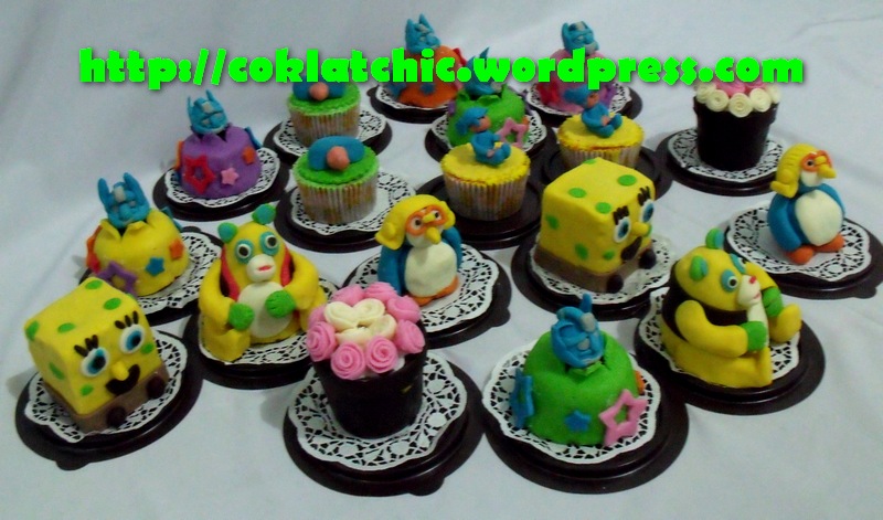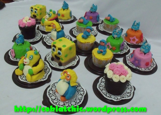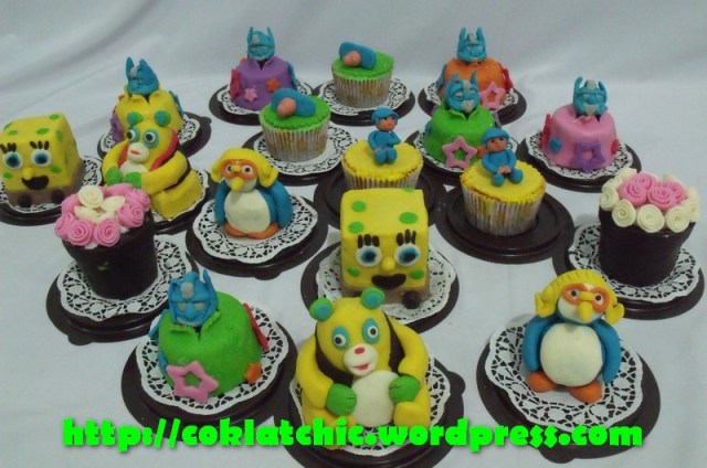 Minicake spongebob,minicake pororo,minicake transformer,minicake agent osso,minicake pot bunga Topper dan pelapis terbuat dari coklat bukan fondant atau sugar icing Posted with WordPress for BlackBerry. Share this: Click to share on Facebook (Opens in new window) Facebook Like Loading... Related