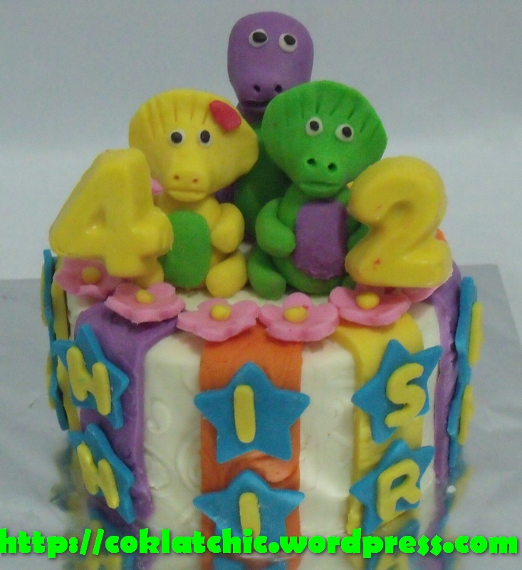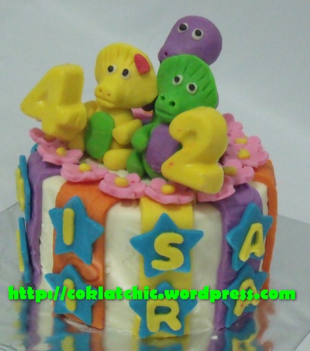 Barney and friends cake – NISA dan NIRA Harga kue model ini mulai dari Rp 125 ribu,topper dan pelapis terbuat dari coklat bukan fondant atau sugar icing Posted with WordPress for BlackBerry. Share this: Share on Facebook (Opens in new window) Facebook Like Loading... Related