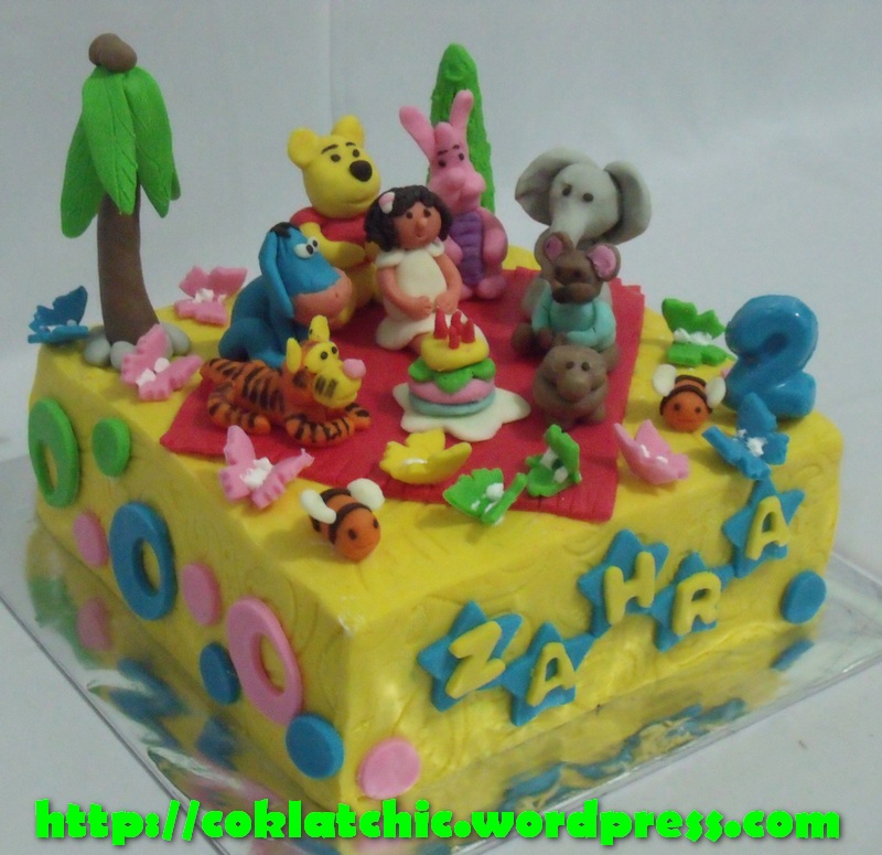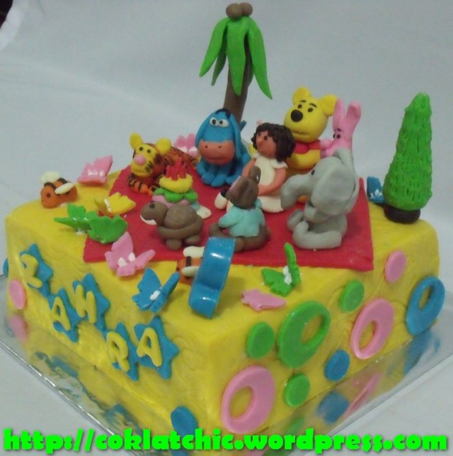 Winnie the Pooh party cake – ZAHRA Kue model ini mulai dari Rp 300 ribu, topper dan pelapis terbuat dari coklat bukan fondant atau sugar icing Posted with WordPress for BlackBerry. Share this: Share on Facebook (Opens in new window) Facebook Like Loading... Related