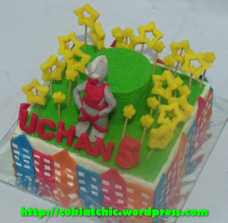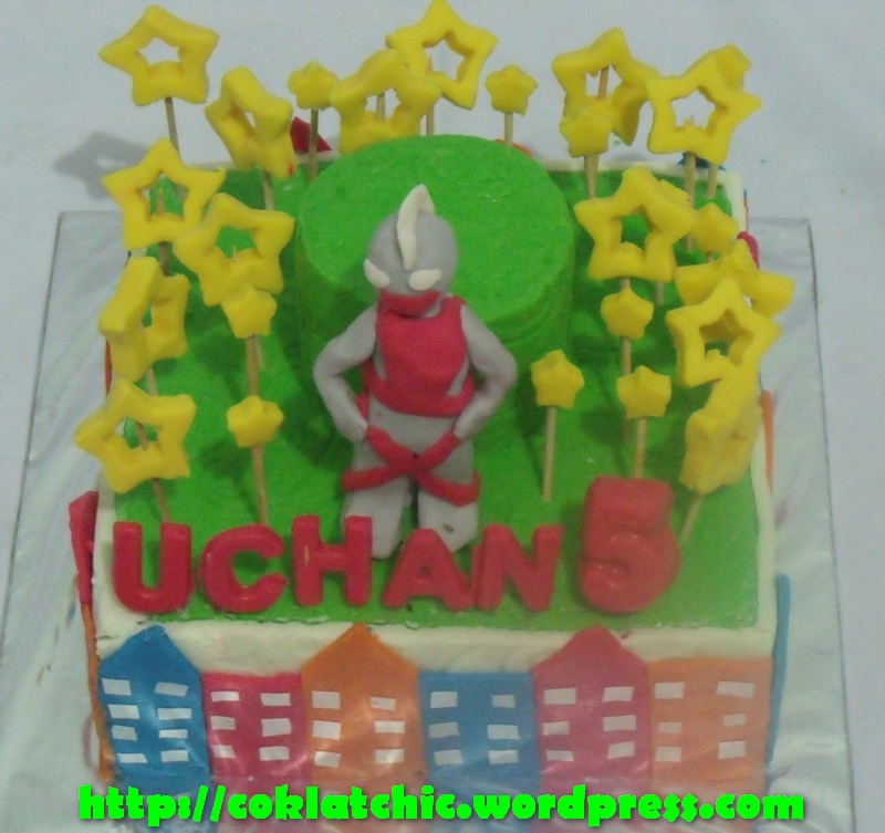 Cake Ultraman – UCHAN Kue model ini harganya mulai dari Rp 300ribu, topper dan pelapis terbuat dari coklat bukan fondant atau sugar icing Posted with WordPress for BlackBerry. Share this: Share on Facebook (Opens in new window) Facebook Like Loading... Related