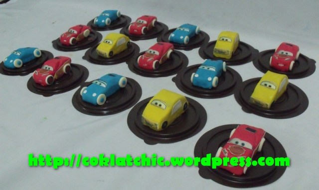Lightning mc Queen and friends minicake Terbuat dari crafted cake,dilapisi dengan coklat bukan fondant atau sugar icing Posted with WordPress for BlackBerry. Share this: Share on Facebook (Opens in new window) Facebook Like Loading... Related