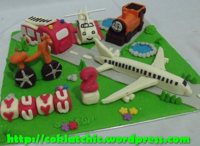 All about transportation cake (pesawat terbang,helicopter,sepeda,pemadam – kebakaran dan kereta api) – YUYU Harga kue model ini mulai dari Rp 200 ribu. Terbuat dari crafted cake, pelapis dan topper terbuat dari coklat bukan fondant atau sugar icing Posted with WordPress for BlackBerry. Share this: Share on Facebook (Opens in new window) Facebook Like Loading... Related