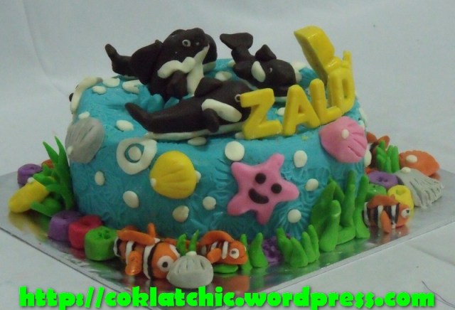 Dolphin cake dan dolphin minicake – ZALDY Kue model ini mulai dari harga Rp 200 ribu,topper dan pelapis terbuat dari coklat bukan fondant atau sugar icing Posted with WordPress for BlackBerry. Share this: Share on Facebook (Opens in new window) Facebook Like Loading... Related