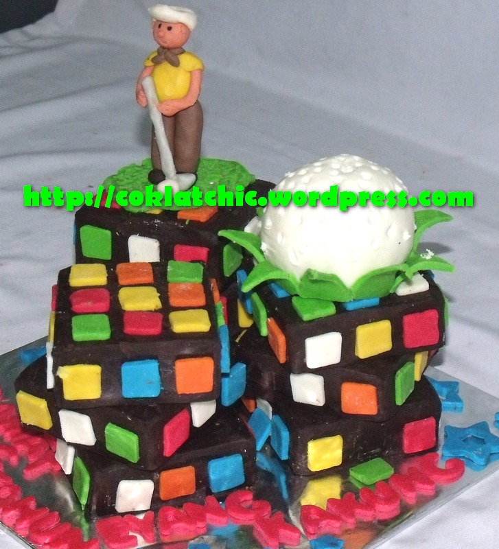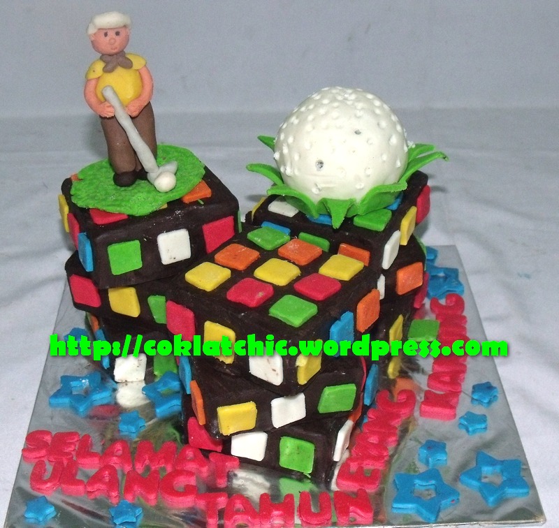 Rubics dan golf cake Harga kue model ini mulai dari Rp 200 ribu,terbuat dari crafted cake yang dilapisi dengan coklat bukan fondant atau sugar icing Posted with WordPress for BlackBerry. Share this: Share on Facebook (Opens in new window) Facebook Like Loading... Related