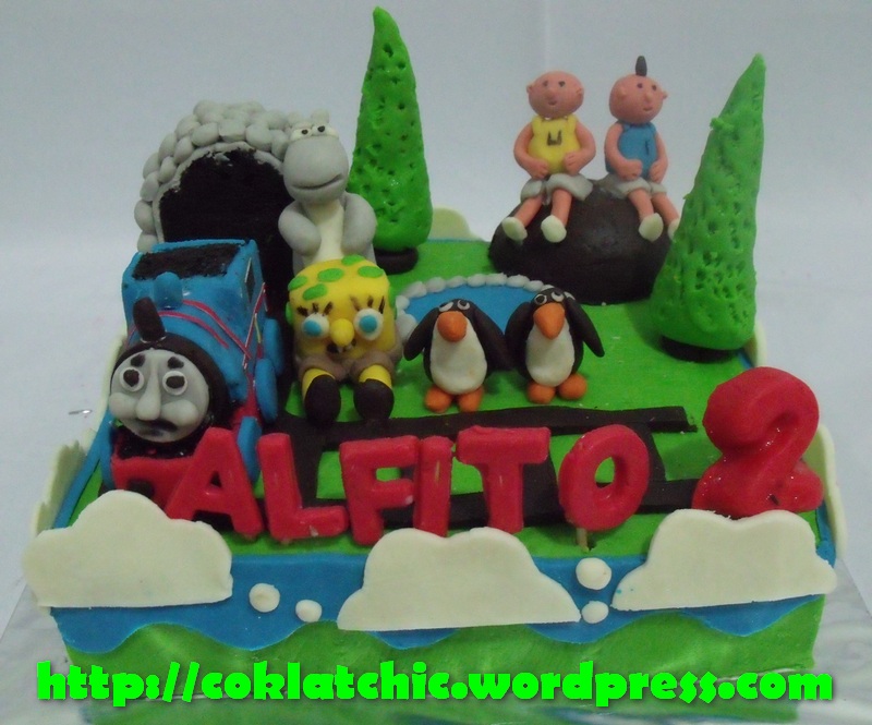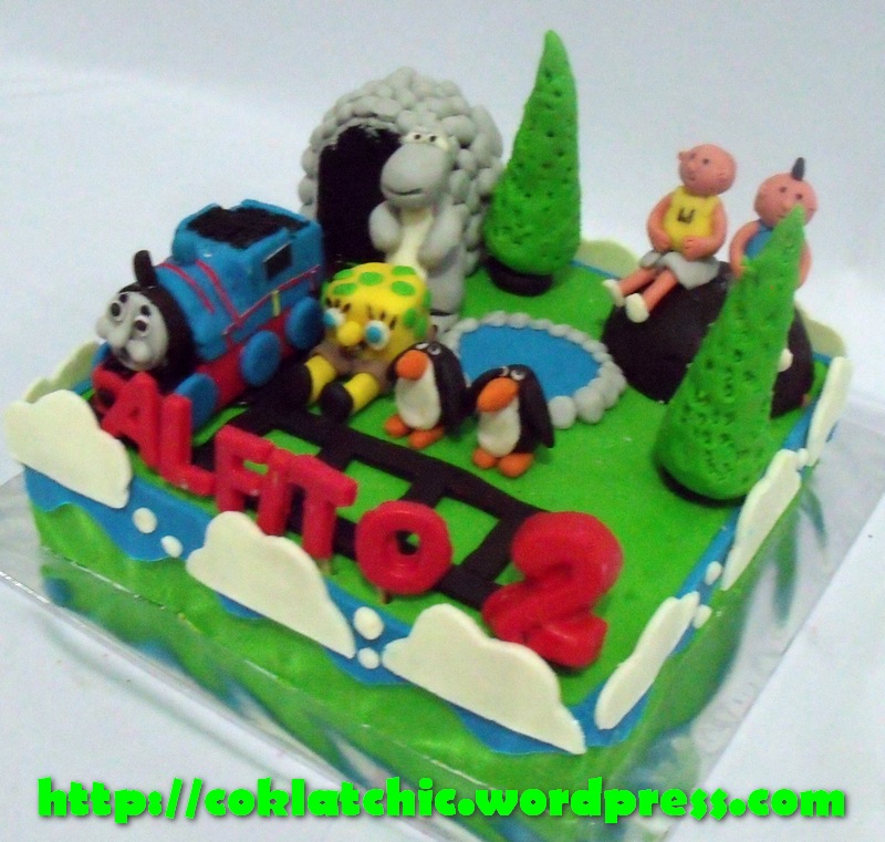 Cake Thomas the tank engine bersama-sama ipin upin,bernard bear dan spongebob – ALFITO Kue model ini mulai dari harga Rp 300 ribu dengan thomas terbuat dari minicake,semua dilapisi coklat bukan fondant atau sugar icing termasuk toppernya. Posted with WordPress for BlackBerry. Share this: Share on Facebook (Opens in new window) Facebook Like Loading... Related