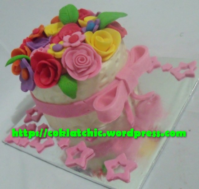 Cake rangkaian bunga Harga kue rangkaian bunga model ini mulai dari Rp 125 ribu,topper dan pelapis terbuat dari coklat bukan fondant atau sugar icing Posted with WordPress for BlackBerry. Share this: Click to share on Facebook (Opens in new window) Facebook Like Loading... Related