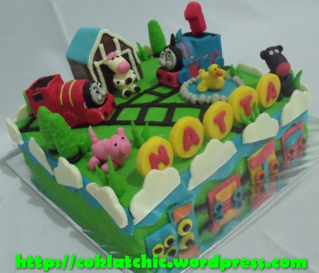 Kue Thomas the tank engine di perkebunan ini mulai dari harga Rp 400 ribu,dengan Thomas dan rumah peternakan terbuat dari crafted cake dilapisi oleh coklat bukan fondant atau sugar icing.