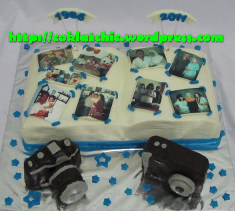 Kue album foto dan kameranya Harga kue model album photo dan kameranya mulai dari Rp 500 ribu,dgn kameranya terbuat dari crafted dilapisi dengan coklat bukan fondant atau sugar icing Posted with WordPress for BlackBerry. Share this: Click to share on Facebook (Opens in new window) Facebook Like Loading... Related