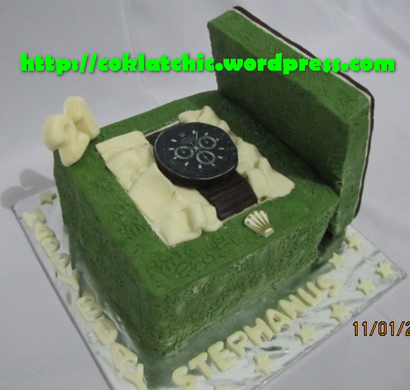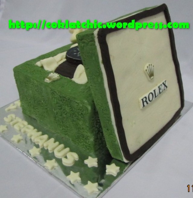 Kue Jam Tangan Rolex Kue Jam Tangan Rolex dengan model ini dimulai dari harga Rp 200 ribu,topper dan pelapis terbuat dari coklat bukan fondant atau sugar icing Posted with WordPress for BlackBerry. Share this: Click to share on Facebook (Opens in new window) Facebook Like Loading... Related